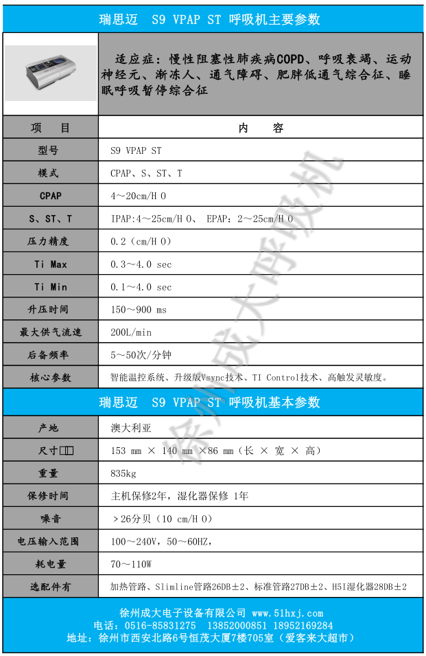 S9 VPAP ST 雙水平呼吸機(jī)